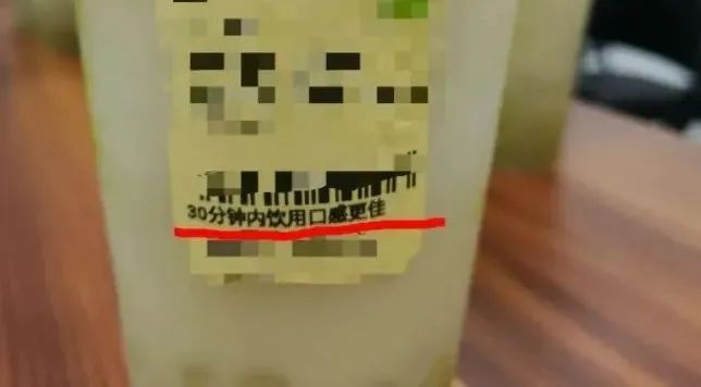 专家提醒,奶茶包装上写的“请于**分钟/小时内饮用”是从奶茶制作完成时开始计算,而不是从送达时间开始计算的。通常,外卖奶茶的制作完成时间与送达时间之间有30分钟至50分钟的时间差。