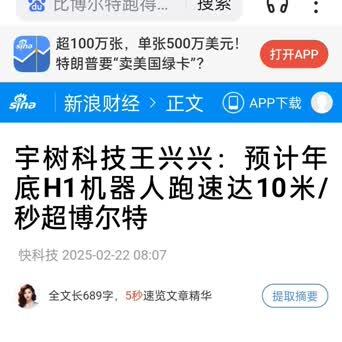 从外观上看,两个机器人差不多。很多人说,宇树机器人跑那么快,以后送外卖时间会更快。王兴兴也说了预计年底网上证劵融资,H1机器人跑速达10米/秒,超过“飞人”博尔特。成为真正世界跑速第一的机器人。